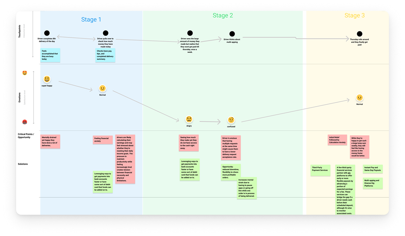 Through qualitative research, I confirmed that delivery driving serves as either a primary or secondary income source for participants, revealing that financial anxiety and the need for faster payments were common concerns, which led to prioritizing quicker earnings access for multi-platform gig workers.